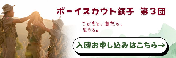 海上キャンプ場にて秋の1泊2日キャンプを実施しました。澄んだ青空と心地よいそよ風に包まれながら、スカウトたちは自然の中で仲間とともに充実した時間を過ごしました。 <班長の1級スカウト章への挑戦> 今回のキャンプでは、班長 […] - 【CS隊】「Only One Story」~基本動作~(2025/4/27)2025年の活動報告が滞ってしまっていましたが、これからは頑張ります✊ 今年のテーマ「やってみよう!!」 一年間で色々なことに挑戦していくので、ここではその挑戦を様子を報告していきます。 4月27日(日)に銚子幼稚園で今 […]