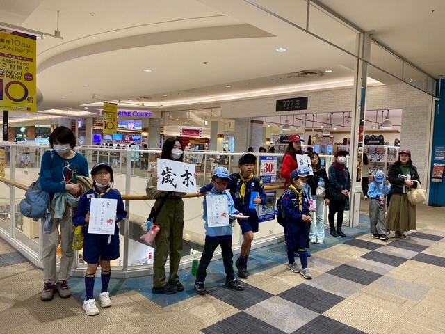 ビーバー隊、カブ隊と合同でイオンモール銚子内4ヵ所にわかれて募金活動を行いました。