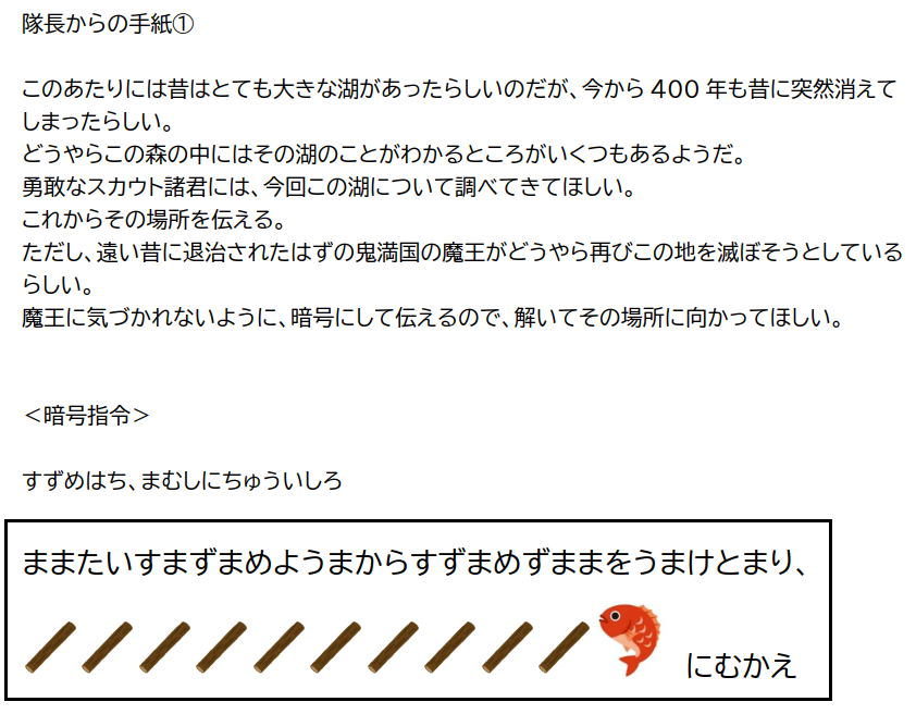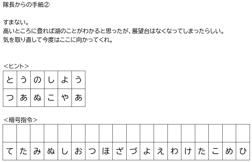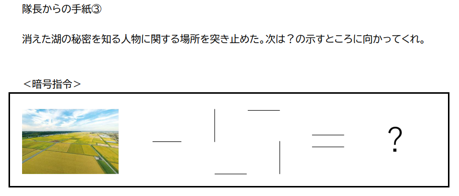 すると、隊長からこんな手紙が届きます。なになに、このあたりにあった大きな湖について調べるのか。