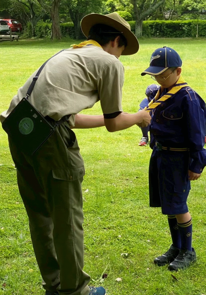 集会の前に新しく仲間になってくれたスカウトの入隊式を行いました。