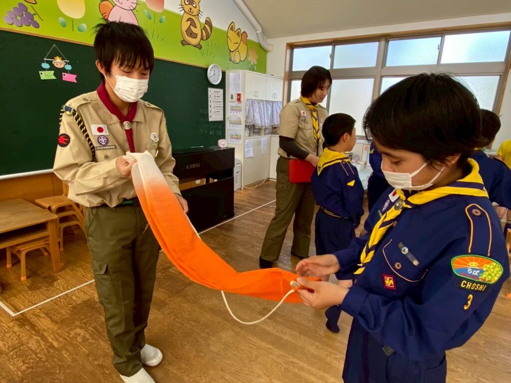 そのあとはくまスカウトやしかスカウトが、うさぎスカウト(小3)に優しく教えてあげる姿がとても印象的でした😊
