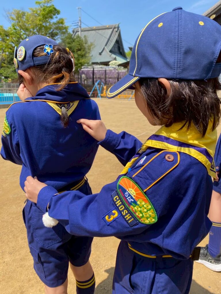 ボーイ隊のお兄さんもデンコーチとして指導してくれます。去年まではカブ隊で一緒に活動していたお兄さん。ボーイ隊の制服がとっても似合っています!!